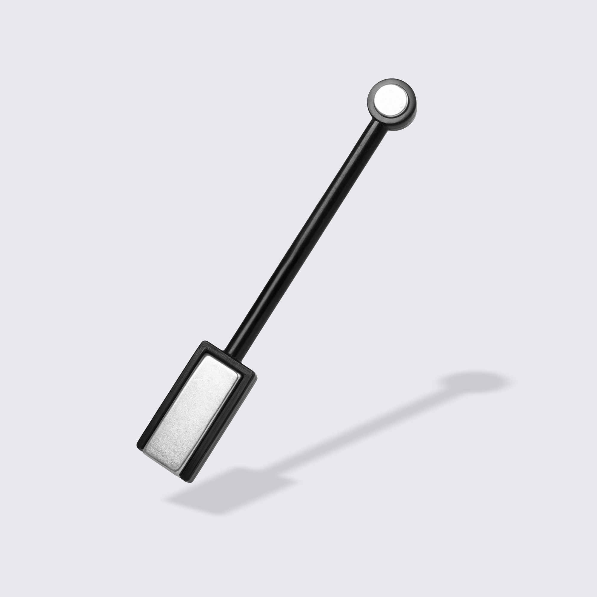 Dual-ended magnet. Circular magnet on one end, rectangular on the other.